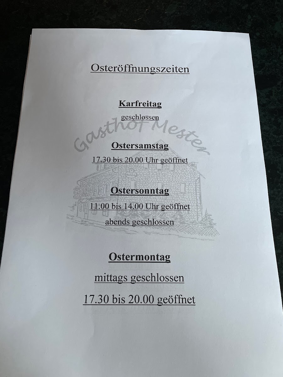 The menu at Gasthof Mester offers a satisfying selection of hearty German classics and well-prepared meat and pasta dishes that reflect traditional flavors and generous portions. Among the highlights, the Zwiebelschnitzel stands out with its rich onion flavor, while the Grillteller provides a great variety for those who want to sample different grilled meats in one plate. The Pfefferrahmschnitzel Mit Bratkartoffeln is particularly enjoyable, combining a creamy pepper sauce with crispy fried potatoes, and the Schweinerückensteak Mit Bratkartoffeln delivers a tender, well-seasoned pork steak paired with classic sides. For something slightly lighter, the Bandnudeln Mit Wildlachsstreifen offers a pleasant pasta option with flavorful salmon, adding variety to the menu. Meat lovers will also appreciate the Rumpsteak Mit Überbacken Gemüse Und Gemüse Und Extra Pfeffersoße, a filling and savory dish that rounds out the menu nicely. Overall, the menu focuses on comforting, traditional cuisine with solid portions and satisfying flavors, making it a reliable choice for those seeking classic German dining.